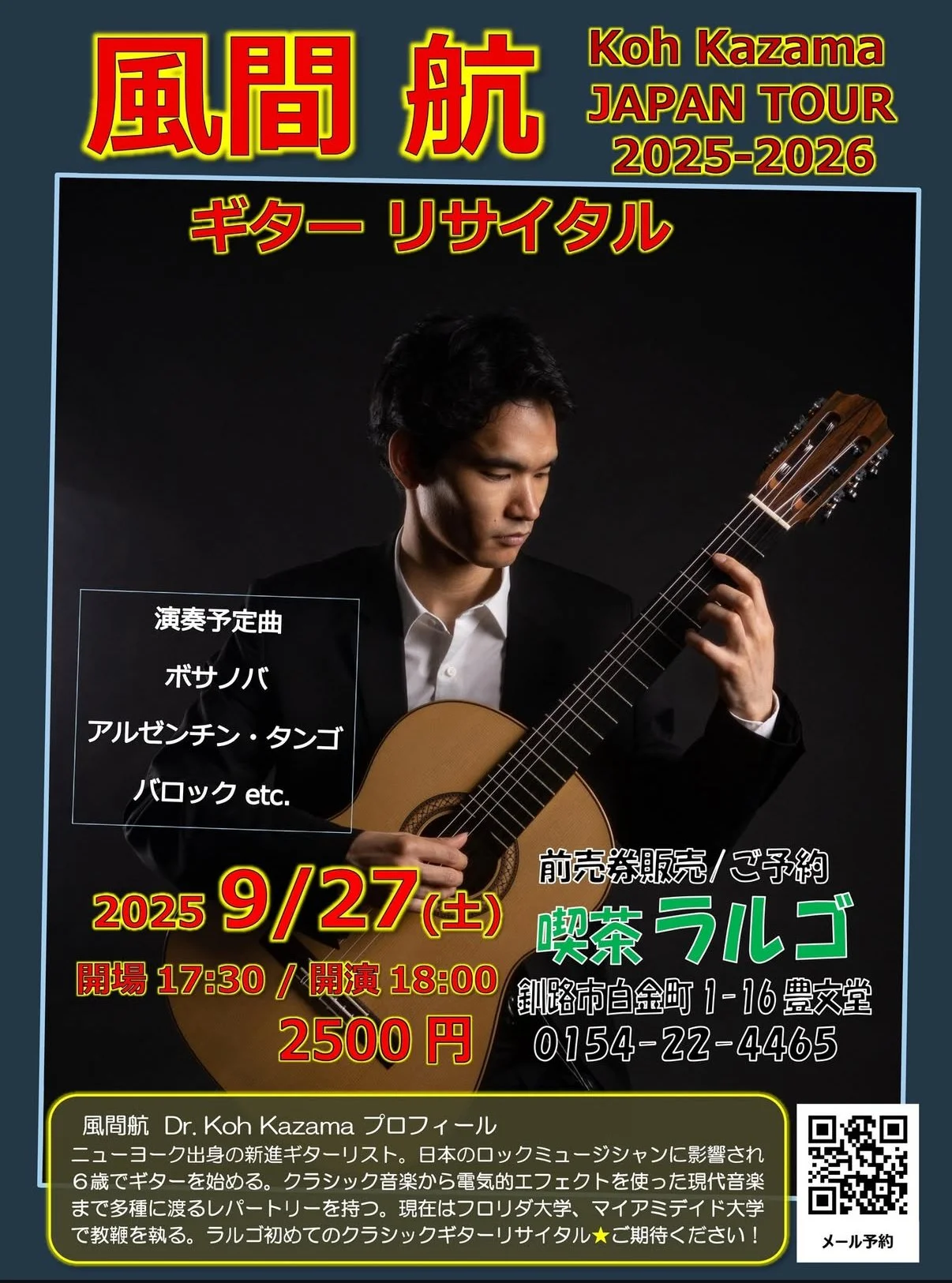 メール:info@kohkazama.com (お名前、ご来場人数)